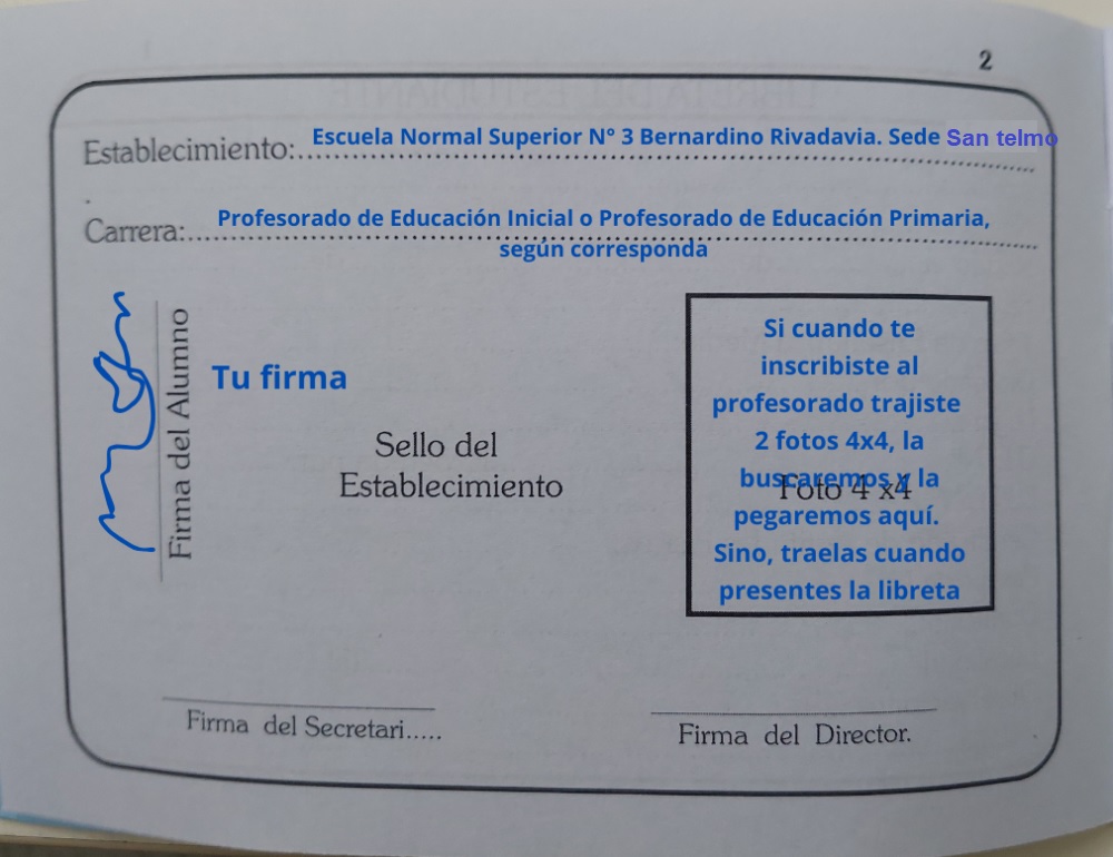 Dejá la libreta en Bedelía nuevamente para ser sellada y firmada por las autoridades correspondientes.