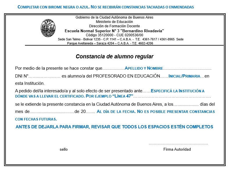Para estudiantes de la institución: Imprimir y completar este formulario. Traerlo a la Bedelía para su correspondiente autorización.